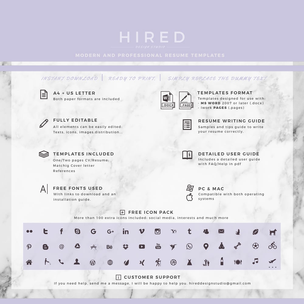 © The Resume Layouts were made by Hired Design Studio. All designs are copyrighted. The templates are for personal use only and may not be resold or redistributed under any circumstances.